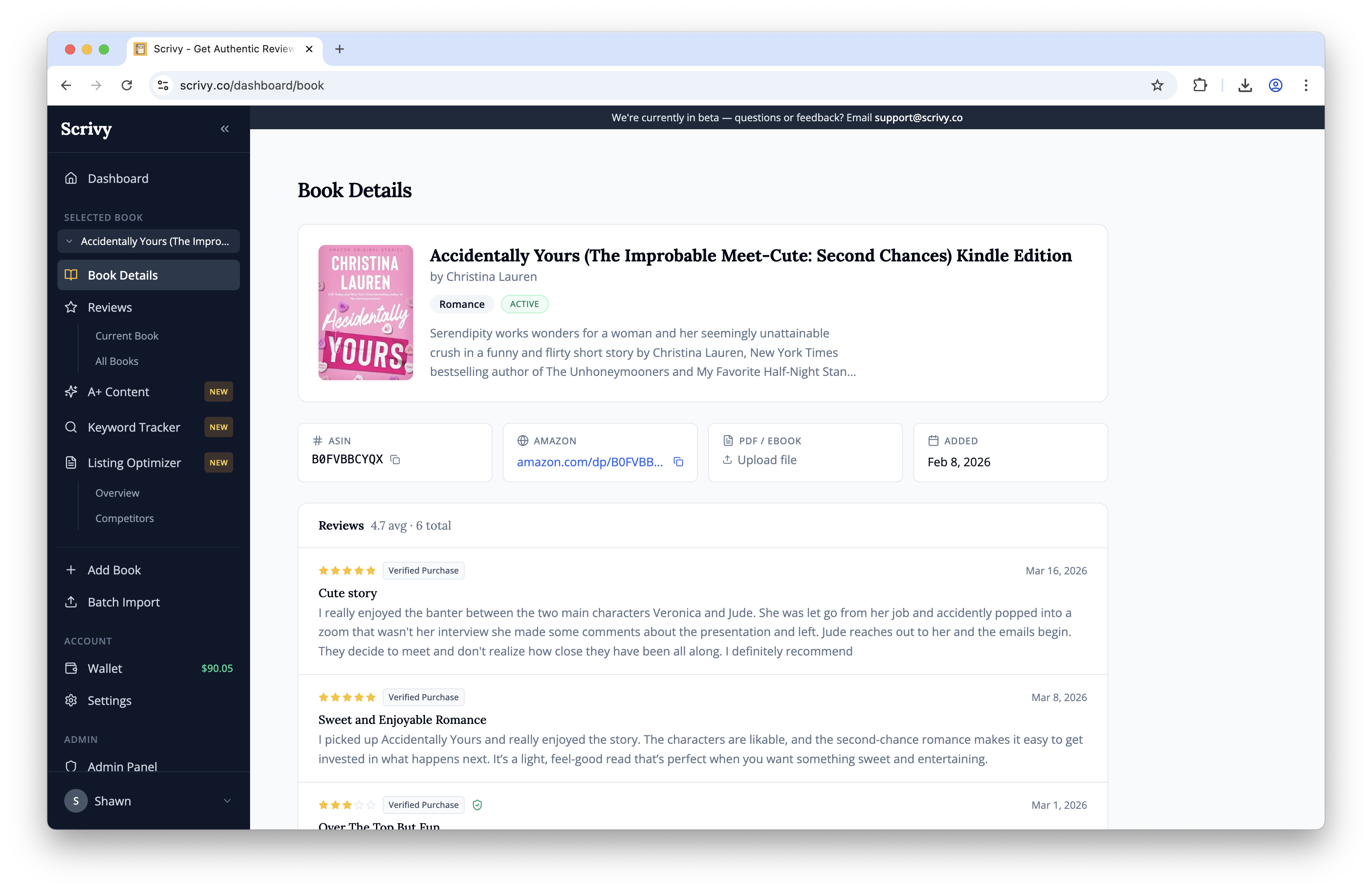 Scrivy gives self-published KDP authors the tools to rank higher, reach more readers, and grow sales — from real reader reviews to keyword tracking, listing optimization, and A+ content.